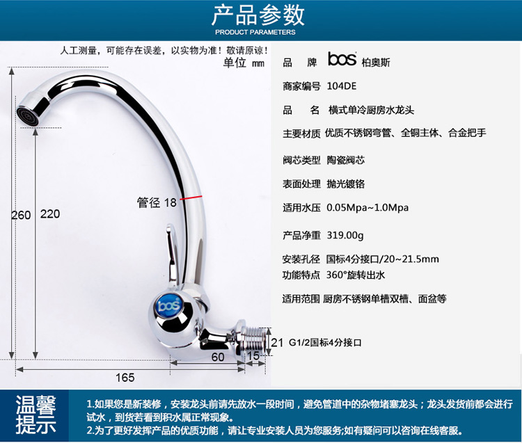 單冷入墻廚房龍頭